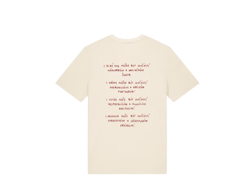 Tričko, který potřebujeme nosit všichni, protože chceme tuhle message šířit do svýho srdcem vztahů i světa.
